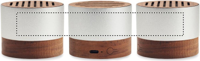 5.3 wireless Lautsprecher. Gehäuse aus recyceltem Aluminium mit Details aus Walnussholz. Inkl. 1 wiederaufladbarer Li-ION-Akku mit 300 mAh. Ausgangsdaten: 3 W, 3 Ohm und 5 V. Spielzeit ca. 3 Stunden.