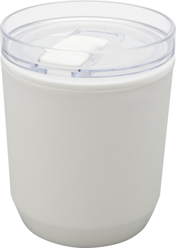 Becher mit einfachem Design, der in die meisten Kaffeemaschinen und Getränkehalter im Auto passt. Doppelwandige Konstruktion mit einer Außenseite aus recyceltem PP Kunststoff und einer Innenseite aus PP Kunststoff. Der Schiebedeckel besteht aus AS- und PP Kunststoff. Fassungsvermögen: 180 ml.