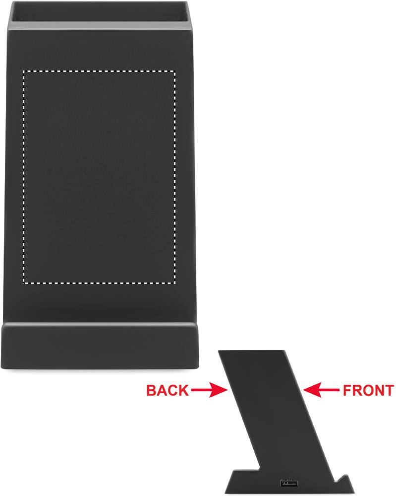 Induktive Double Coil Ladestation mit Stifthalter. ABS. Ausgang: DC 9V/1.67A (15W) für schnelles Aufladen. Kompatibel mit den neuesten Android Smartphones, iPhone® 8, X und neueren Modellen.