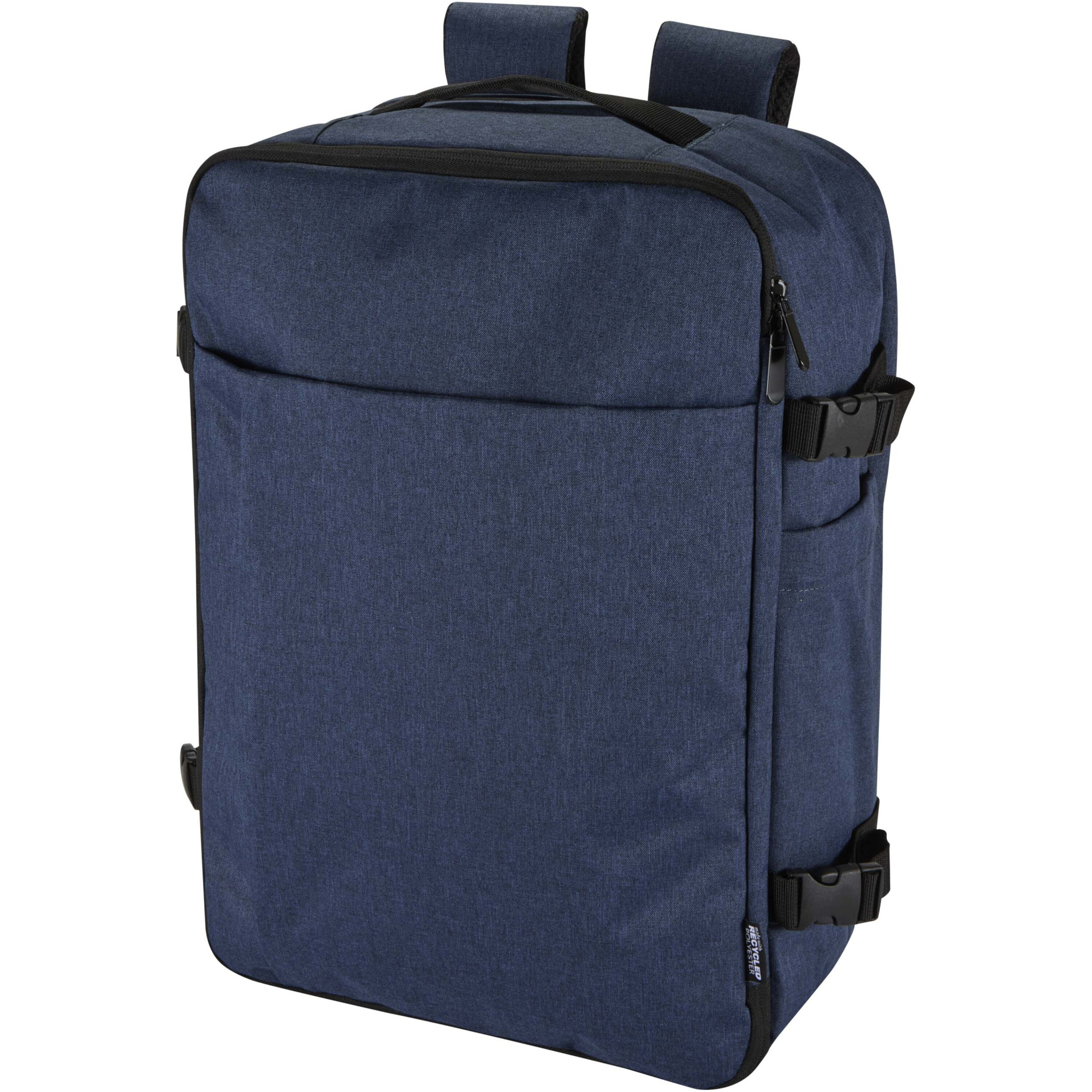 Der aus GRS-zertifiziertem, recyceltem Polyester mit RPET-Futter hergestellte Libra 17 Zoll Handgepäckrucksack entspricht den Anforderungen für Handgepäck in Flugzeugen und ist somit der ideale Reisebegleiter. Er verfügt über ein spezielles Laptopfach für Geräte bis 17 Zoll, ein geräumiges Hauptfach mit elastischen Bändern und Netzfächern zum sicheren und ordentlichen Verstauen von Gegenständen sowie zwei große Fronttaschen mit Reißverschluss für den einfachen Zugriff auf wichtige Utensilien. Für Komfort und Bequemlichkeit verfügt der Rucksack über eine atmungsaktive Rückwand, einen Trolley Gurt, verstellbare Schultergurte mit Brustgurt sowie Griffe an der Oberseite und an den Seiten, die vielseitige Trageoptionen ermöglichen. Dieser Rucksack eignet sich für Geschäftsreisen, Remote Arbeit oder Wochenendausflüge und kombiniert ein schlankes Design mit praktischer Funktionalität für alle, die viel unterwegs sind.