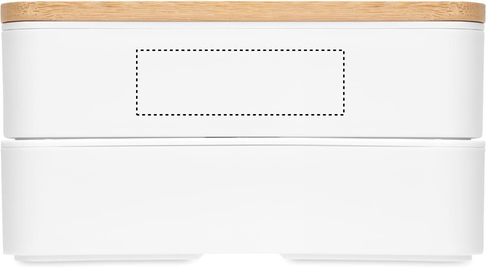 Lunchbox aus PP mit 2 Ebenen. Deckel aus Bambus. Inkl. herausnehmbarer PP-Trennwand, 3-teiligem Besteck. Elastikband. Füllmenge 400ml (2x). Bambus ist ein natürliches Produkt, es kann daher zu leichten Abweichungen in Farbe, Dekor und Maßen kommen.