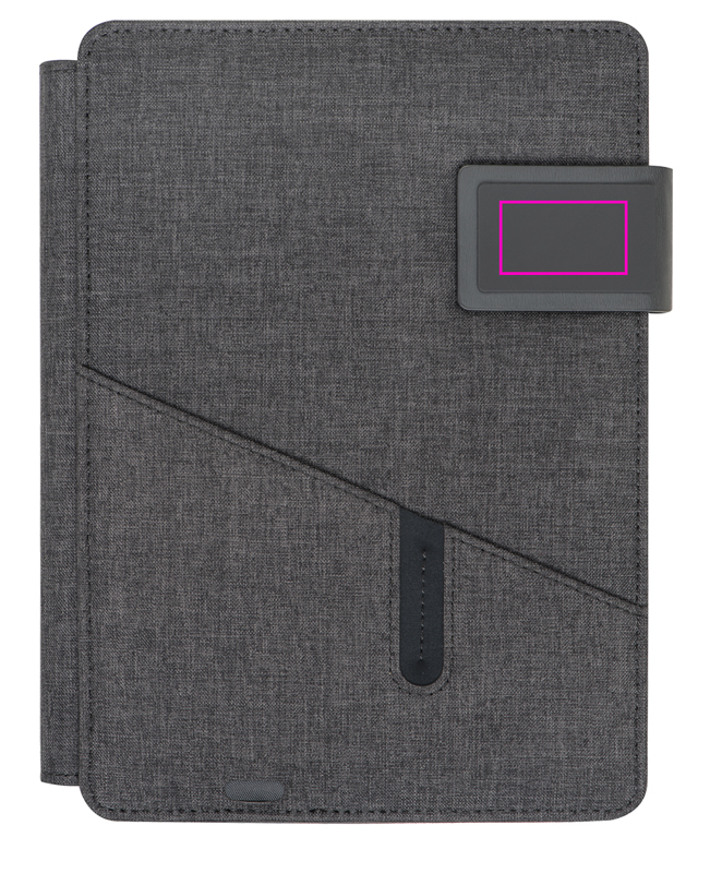 Powerbank-Mappe A5 mit integrierter Powerbank (4.000 mAh), Notizbuch (128 Seiten) und Einsteckfach auf der Vorderseite. Input: 5V/1A - Output: 5V/2,1A. Ihre Werbung drucken wir auf die Vorderseite.
