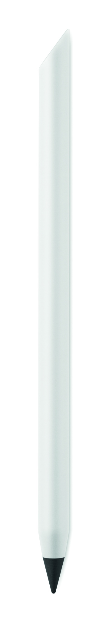 Langlebiger Stift aus recyceltem Aluminium ohne Tinte. Der Stift schreibt mittels Grafitspitze, die durch eine Kunststoffkappe geschützt ist.