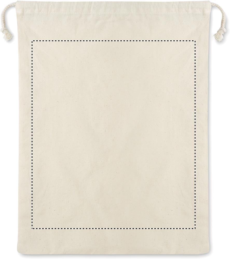 Re-usable food bag. One side is in cotton (140gr/m²) and other one is in mesh cotton (110gr/m²). Drawstring closure.