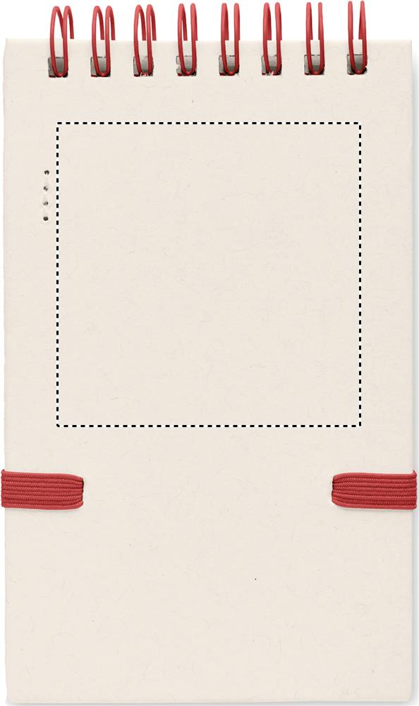 A6 Recycled milk cartons 70 sheet recycled lined paper notebook (70 % recycled milk carton and 30% recycled paper) with matching pen. Ring bound. Matching push button ball pen. Blue ink. Elastic closure strap and pen holder.
