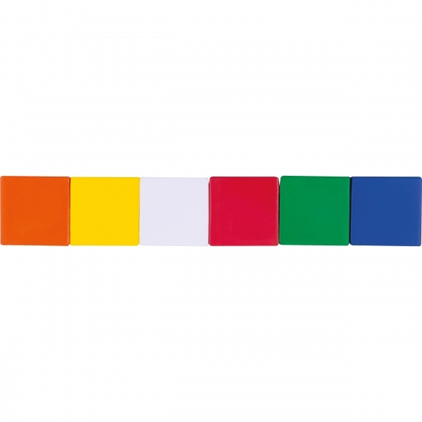 Anti-stress cube made of foamed polyurethane (PU). Your logo is applied to one side of the cube using laser engraving.