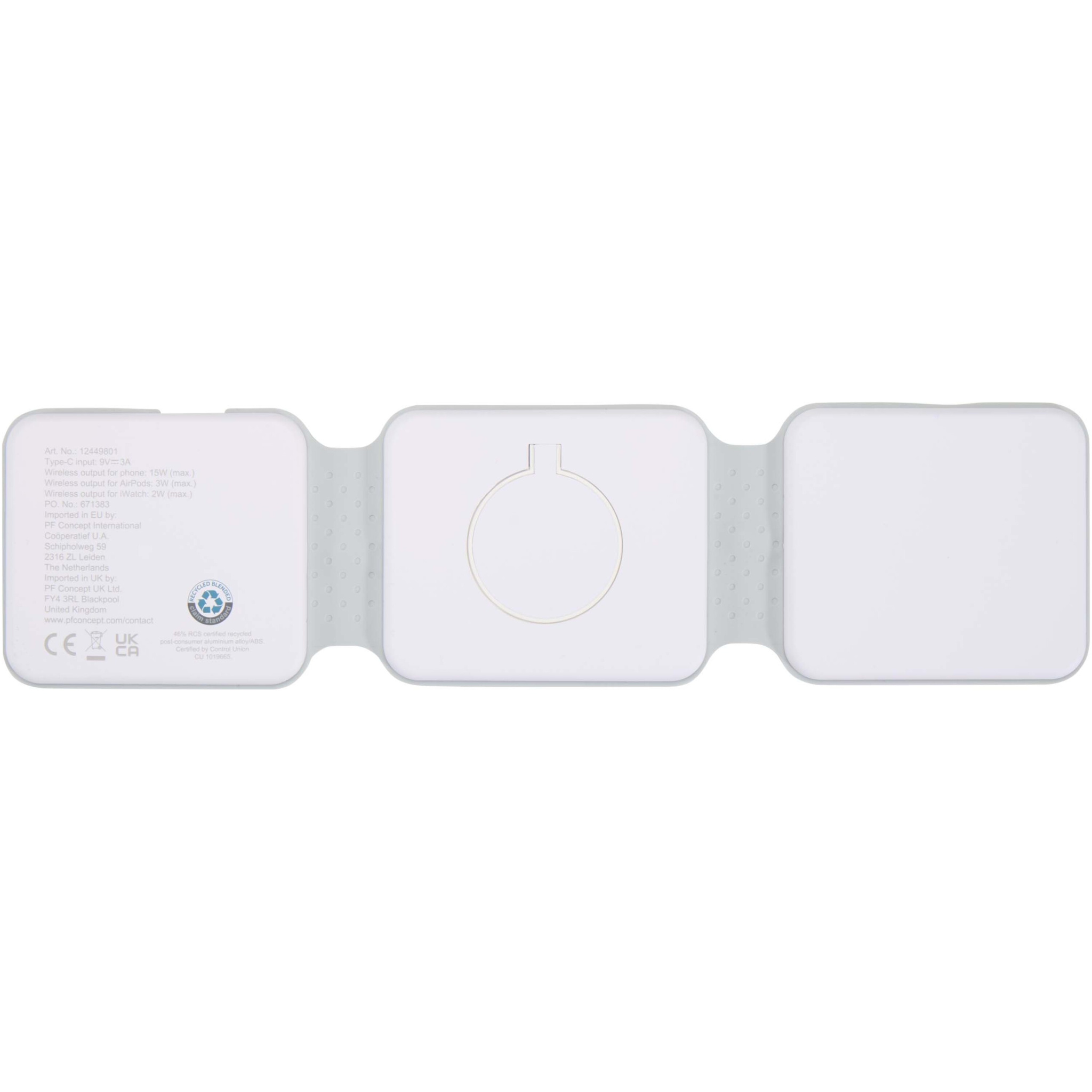 Armus 3-in-1 15W recycled plastic foldable wireless charger, White