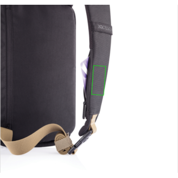 Safe, comfortable, and smart, the Bobby Sling was designed for city travelers. Feel protected with the famous Bobby anti-theft features like hidden zippers, no front access, RFID protected pocket, and cut-resistant material. There is also a 3-point safe buckle, ensuring your daily essentials are always along your body. Additional features like water-resistant material and an integrated USB charging port make this crossbody backpack the most convenient option for your everyday journey. Made from R-pet fabric with the AWARE™ tracer. With AWARE™, the use of genuine recycled fabric is guaranteed. 37% Recycled content. Registered design®