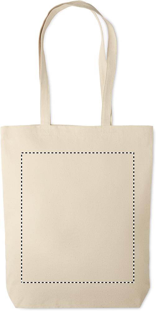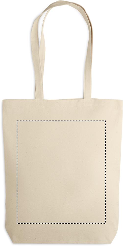 Canvas shopping bag with long handles and with bottom gusset. An ideal bag for your daily grocery shopping. The long handles make it easy to carry it by either holding it or hanging it over your shoulder. This canvas tote has a base gusset so you can carry more items than with a regular shaped bag. 270 gr/m².