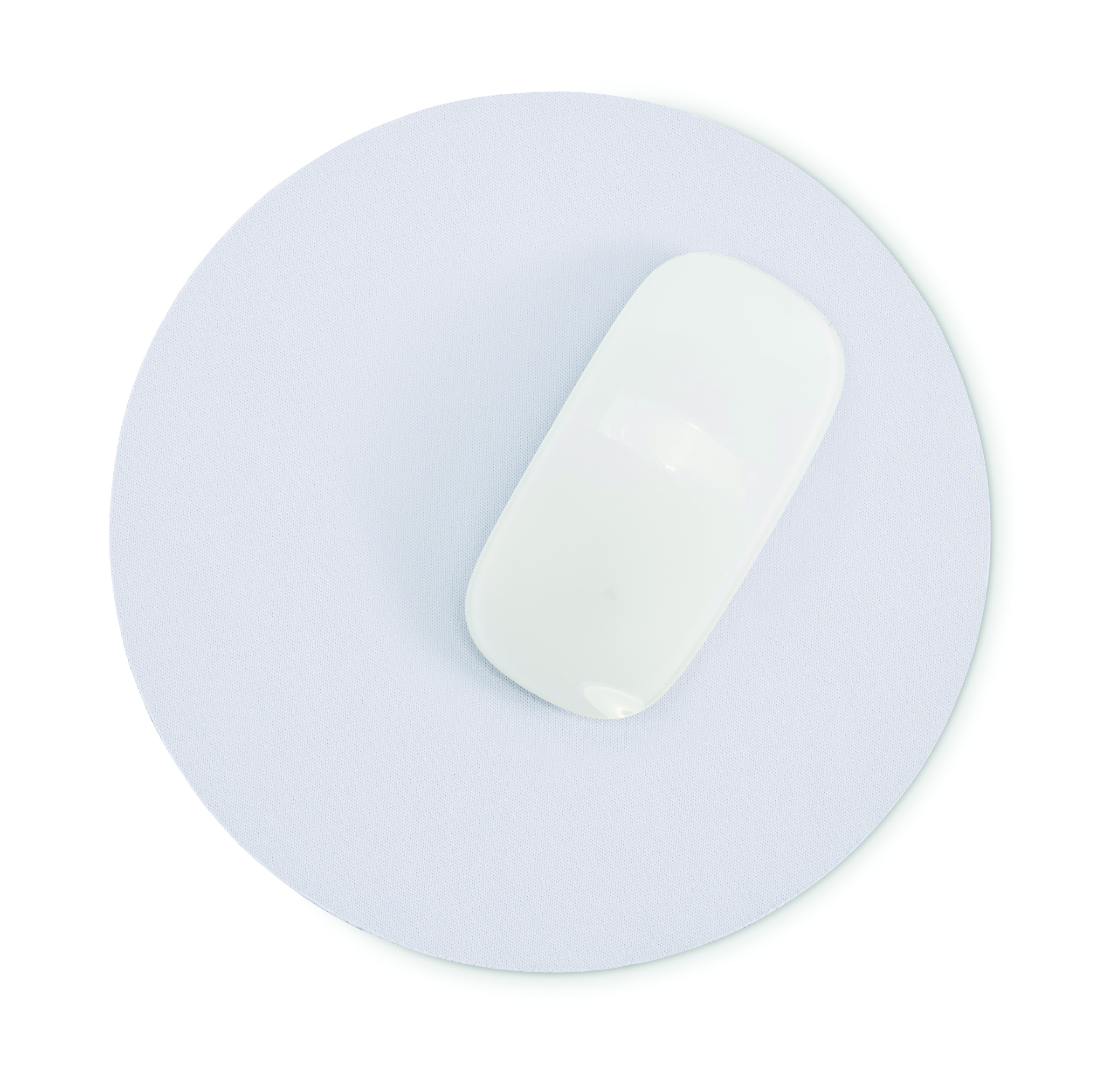 Computer mouse mat for sublimation with polyester surface and rubber on the base to prevent slipping. Diameter 21cm.