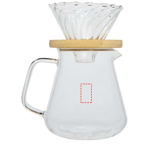 High-temperature-resistant glass espresso coffee maker with a capacity of 500 ml. The filter can be separated. Works with filter paper. The bamboo holder is from sustainable, environmentally, and socially responsible sources.
