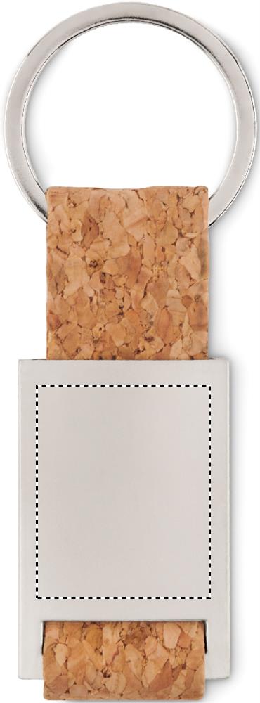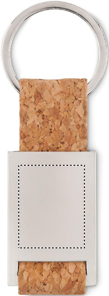 Metal rectangular key ring with cork webbing.