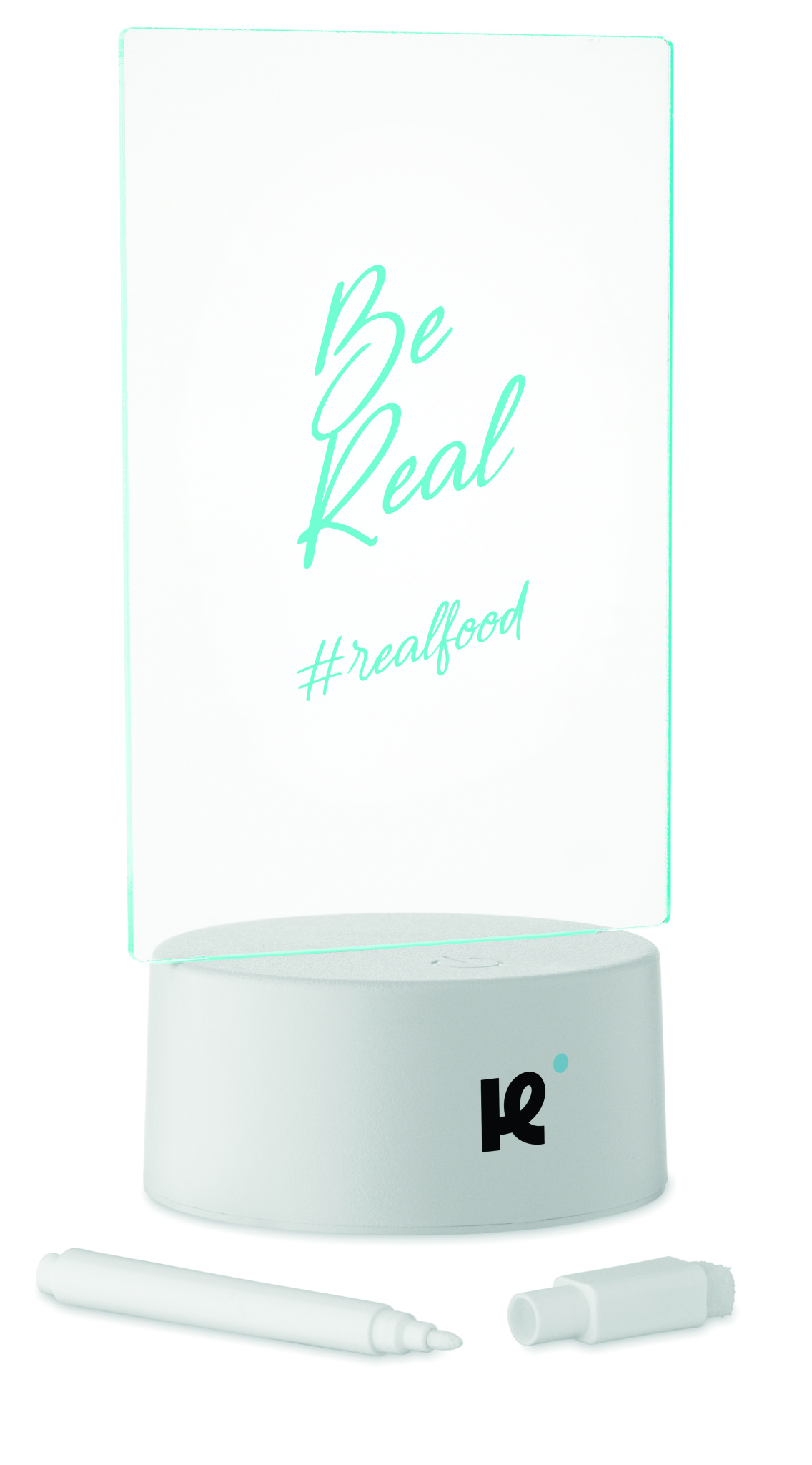 Light-up LED memo board with colour changing light and erasable white marker. Features acrylic board and aluminium base. Battery powered, requires 3 x AAA batteries (not included).