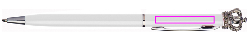 Slim ballpen made of metal with blue writing refill. The crown and the small glass diamond make this pen unique. We engrave your logo to the right of the clip.