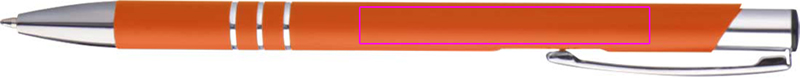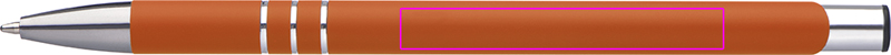 Slim metal ballpen with rubber finish and blue writing plastic refill. Your logo will be engraved below the clip.