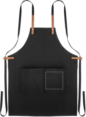 Adjustable kitchen apron with 2 front pockets in 340 gr/m² organic cotton/canvas. Presented in individual box.