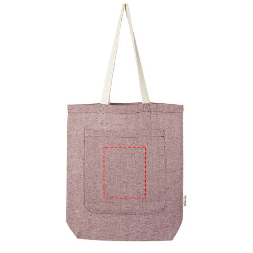 The Pheebs 150 g/m² cotton tote bag is made from eco-friendly, pre-consumer recycled cotton. It features 27 cm durable cotton webbing handles, an open main compartment and a front slash pocket. Resistance up to 10 kg weight. There may be minor variations in the colour of the actual product due to the nature of the production process.