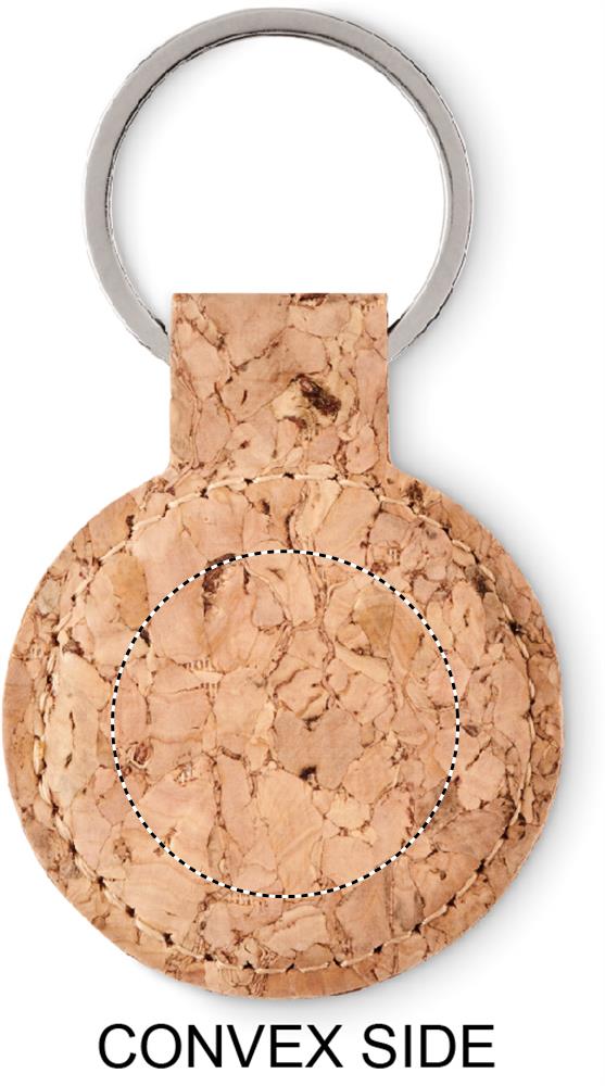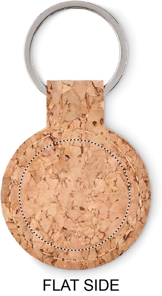 Round cork key ring. Cork is 100% natural material. Due to its structural nature and surface porosity the final print result per item may have deviations.