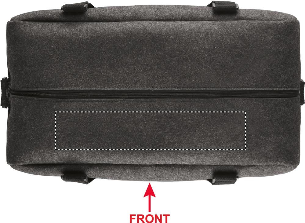RPET felt sports/fitness or weekend bag with zippered front pocket, canvas handles and detachable adjustable shoulder strap.