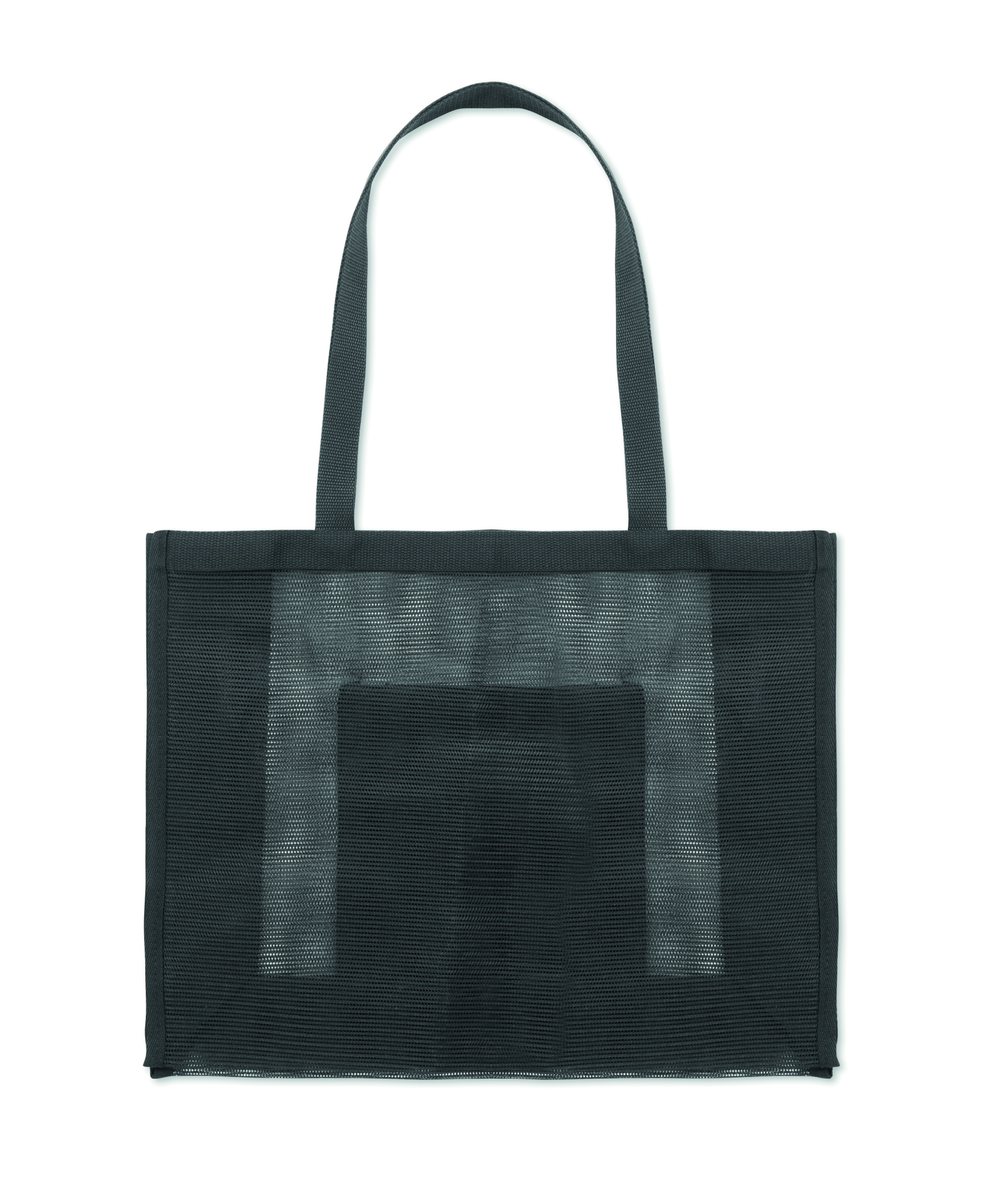 Shopping bag made of RPET mesh and 210D RPET with short handles. Includes large open front pocket. Capacity 20L, load up to 10 kg.
