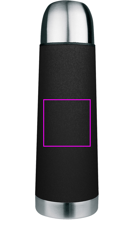 Stylish stainless steel isolating flask with 0,5l capacity, a removable drinking cup in matt-coloured burned-in lacquering. Your logo will be laser engraved in silver. Each flask is packed in a single cardboard box.