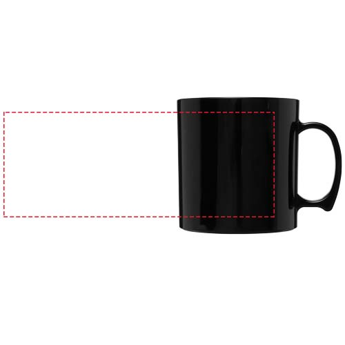 Durable, single-wall plastic mug. Volume capacity is 300 ml. Made in the UK.