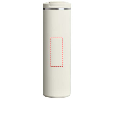 The 470 ml Transit Fliptop double-walled recycled stainless steel tumbler with vacuum insulation is made with premium technology that makes it 33% lighter than standard stainless steel. Featherweight spun-steel insulation keeps drinks hot for 4 hours or cold for 6 hours. The tumbler is leakproof and has a matching silicone at the lid tab and footpad which makes opening, closing and setting it down quieter. Dishwasher safe and compatible with most car cupholders.