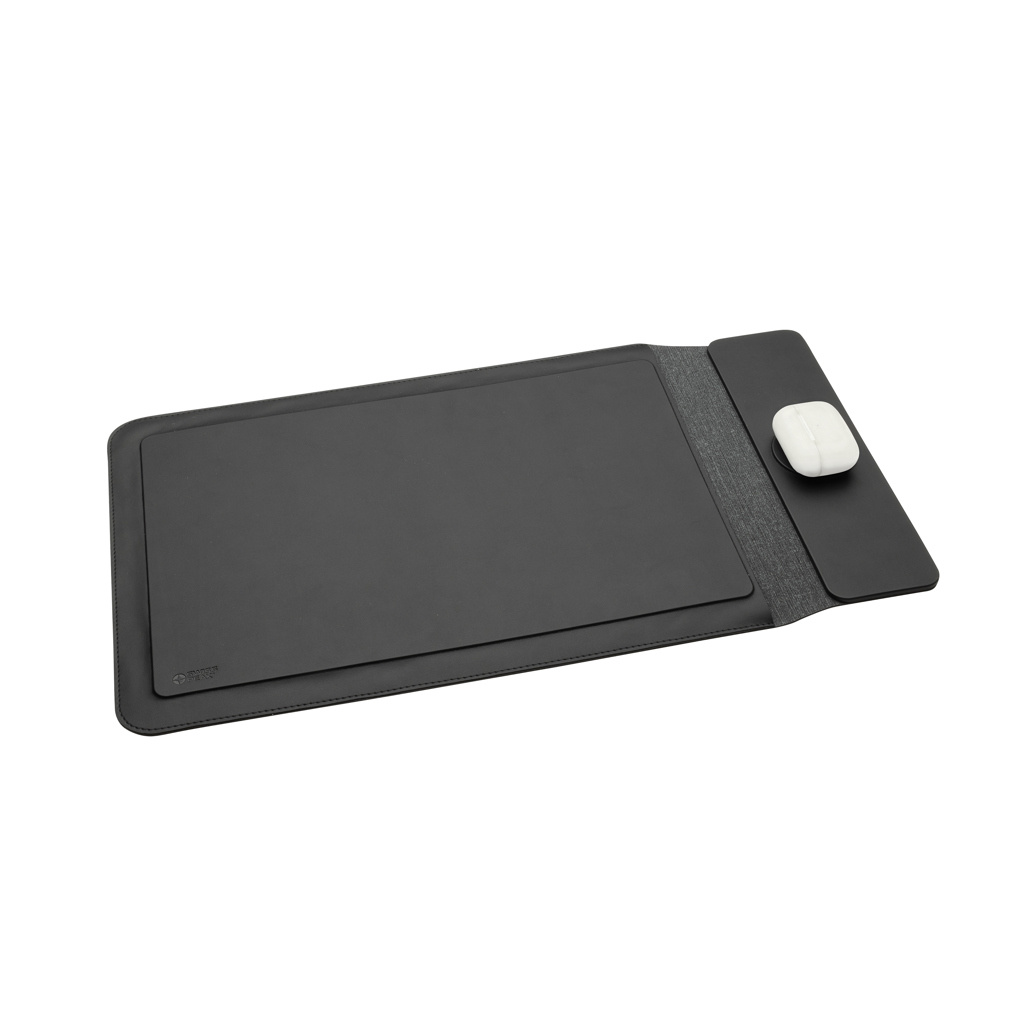 The Swiss Peak RCS Recycled Polyester 15W Magnetic Charging Laptop Sleeve, designed to fit 14-15.6" laptops, combines style, functionality, and sustainability. Use it to carry your laptop anywhere you go and when you arrive at your destination turn it into a work station. Made with RCS (Recycled Claim Standard) certified recycled polyester, the total recycled content is 6% based on the total item weight. This sleek sleeve features a magnetic closure and offers wireless 15W magnetic charging capabilities to keep your devices powered up on the go. It provides a perfect balance of protection and portability. The sleeve comes with a 120cm black RCS Type-C RTPE cable for convenient connectivity and requires a minimum input of 9V/2A. The product is packaged in a black Swiss Peak plastic-free FSC box. Item and accessories PVC free.
