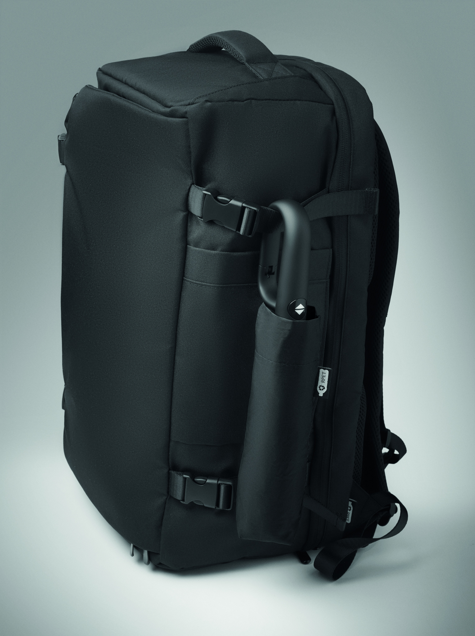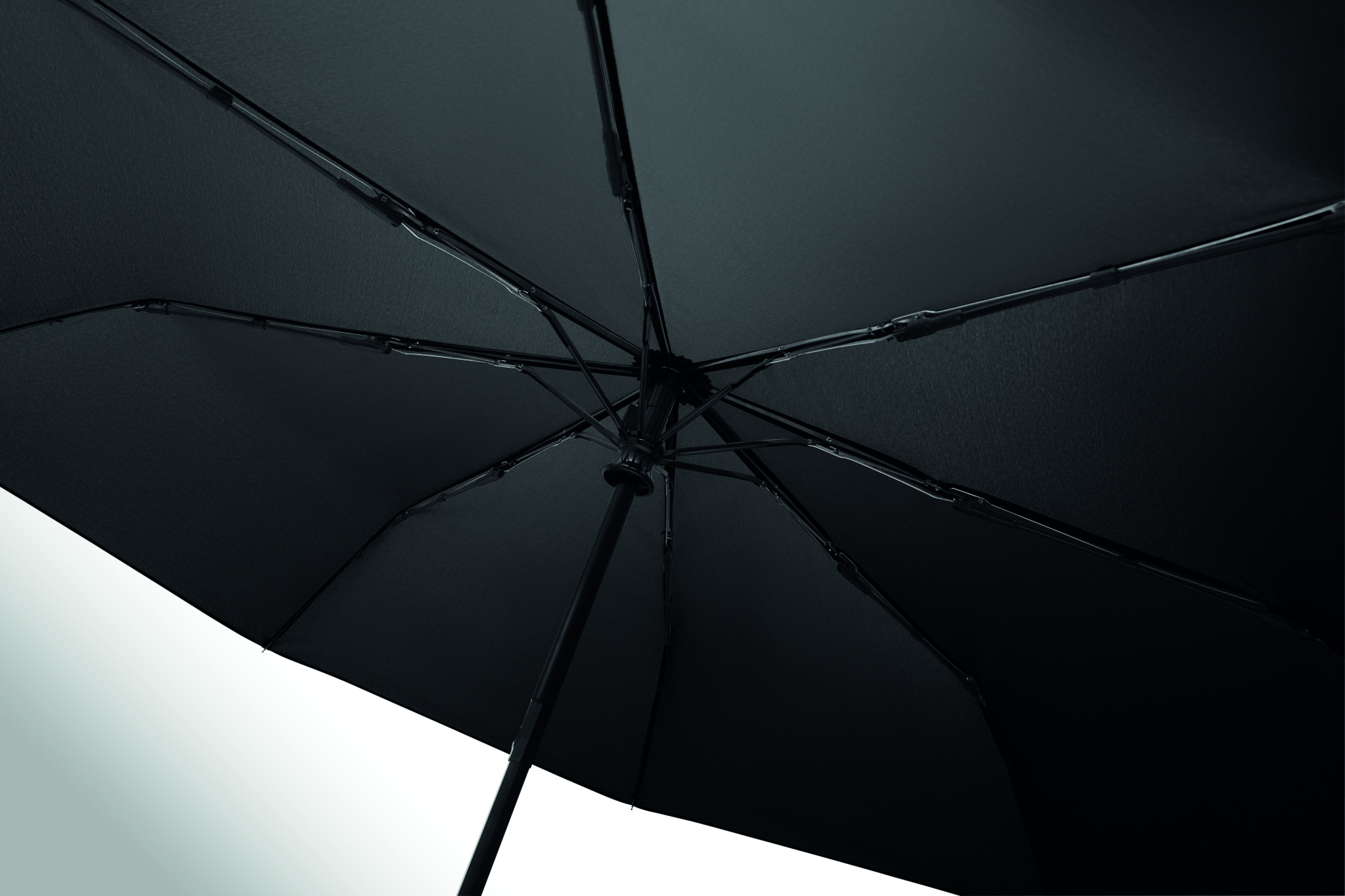 Kokkupandav 21-tolline tuulekindel vihmavari täismusta kattega klaaskiust raamiga. Klaaskiust ribid. 190T RPET pongee paneelid. D-kujuline karabiiniga käepide kummist viimistlusega. Automaatne avamine ja sulgemine. Vutlar kaasas.