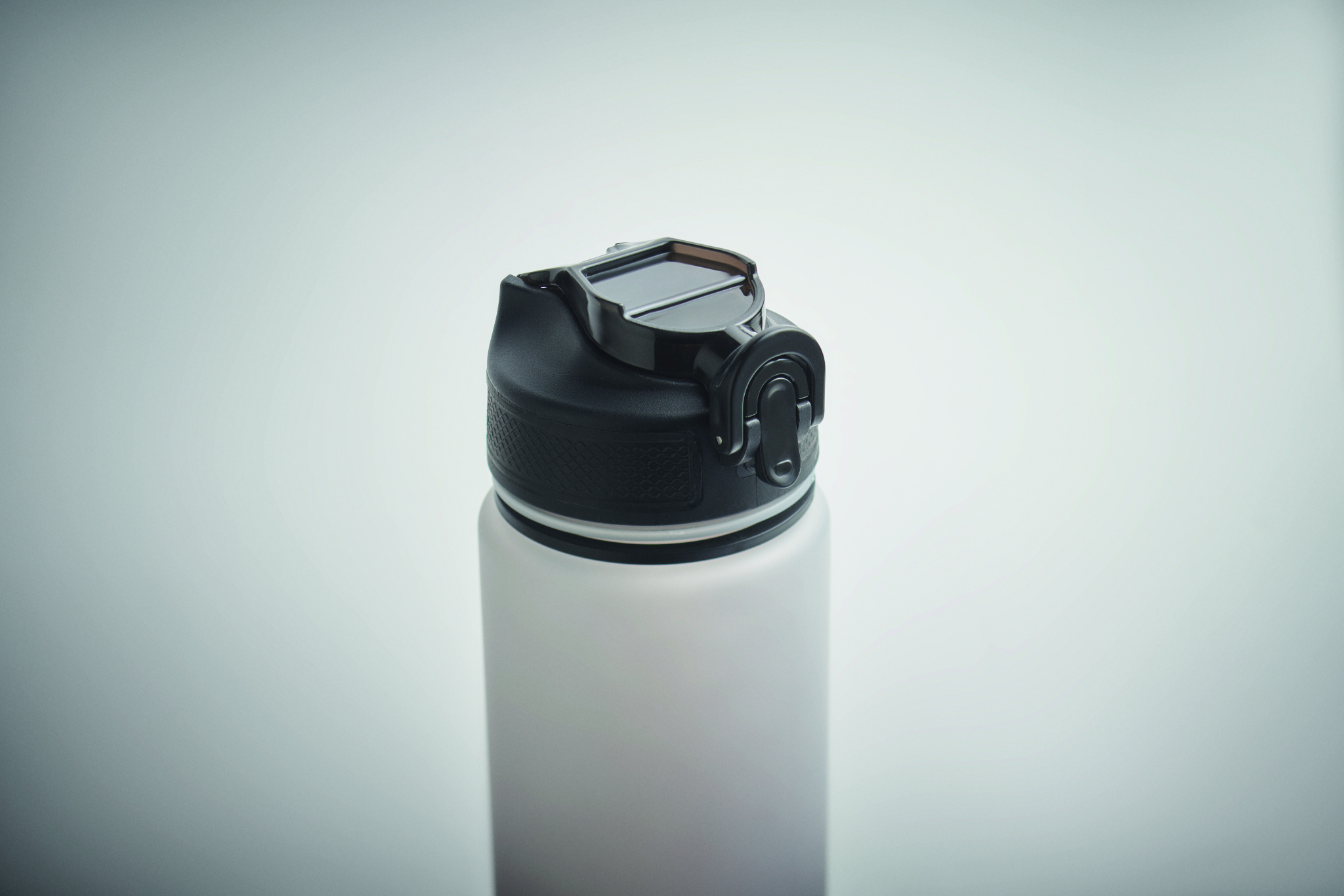 Spordiveepudel RPET-st integreeritud kõrre, pehme silikoonist huuliku, motiveeriva ajamärgistuse, ühe käega avatava klapiga kaane, turvaluku ja kanderihmaga. Mahutavus 1L.