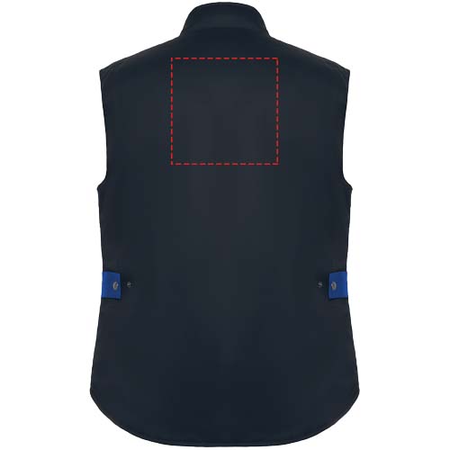 Mitme taskuga kahevärviline töövest kõrge kraega. Ees lukk ja takjapaelkinnitus. Tuulejoped kätistes. Parempoolne välimine telefonitasku klapi ja takjapaelkinnitusega. Kaks volditud esitaskut klapi ja takjapaelkinnitusega. Kaks pliiatsitaskut. Sisemine tasku takjapaelkinnitusega. Lukuga tasku. Pikk saba. Automaatne regulaator. Kontrastsed õlaosad ja detailid.