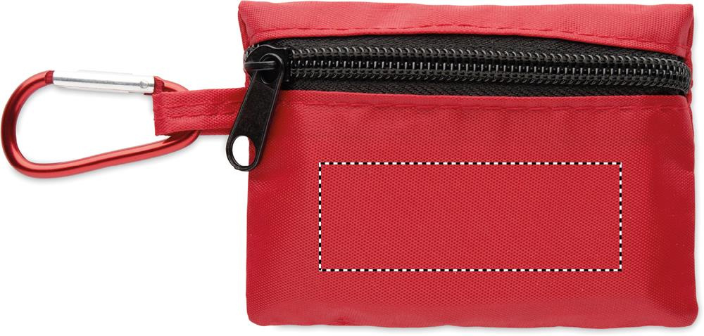 Kompaktne esmaabikomplekt RPET-kotis alumiiniumkarabiiniga. Sisaldab 4 alkoholiga immutatud vatitupsu, 3 plaastrit, 2 sidet, 2 marlilappi, 1 teipi ja kääre. Ei ole müügil väljaspool EL-i.