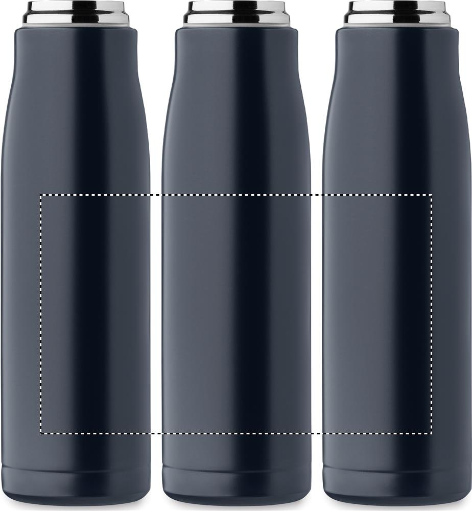 Tumesinine topeltseinaga taaskasutatud roostevabast terasest isoleeritud vaakumpudel (90% taaskasutatud roostevabast terasest ja 10% roostevabast terasest). Lekkevaba. Mahutavus: 500 ml.