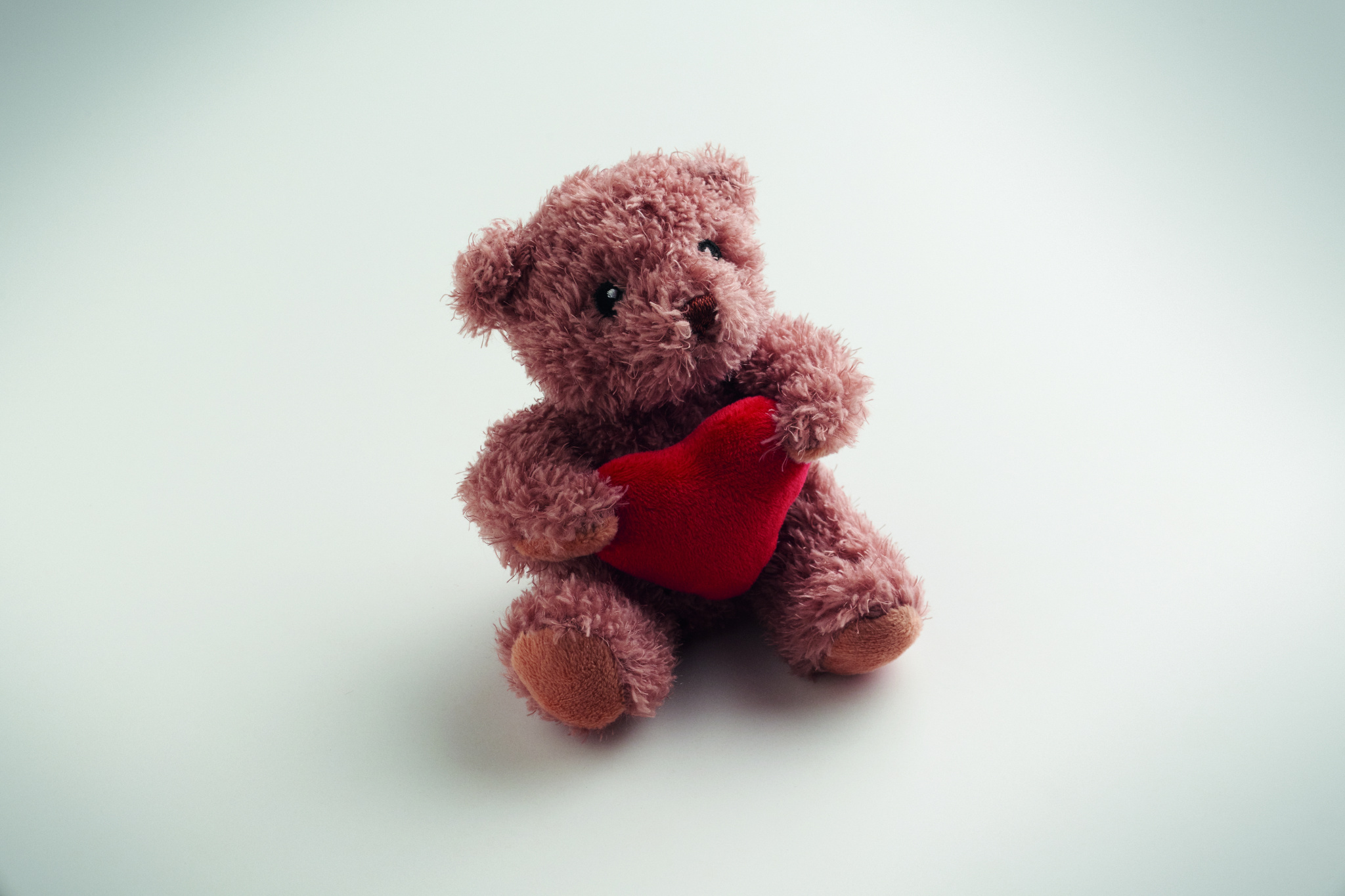 Polüester plüüsist kaisukaru, kellel on punane süda ning tikitud silmad, nina ja suu.