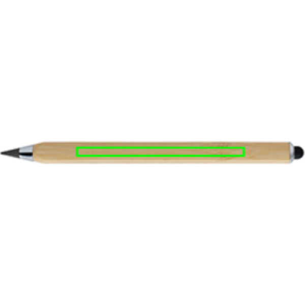 Moodne lõpmatuse pliiats, mis on valmistatud FSC® 100% sertifitseeritud bambusest. Kolmnurga kujuline korpus, ühel küljel CM-tähis ja teisel küljel tolli. Traditsioonilised puidust pliiatsid kirjutavad ainult kuni umbes 200 meetrini, kuid selle Tree-vaba lõpmatuse pliiatsi pikkus on kuni umbes 20 000 meetrit, kasutades grafiidist joont. See mitte ainult ei kirjuta nagu pliiats, vaid ka märgiseid saab kustutada. See toimib nii, et jätab paberile grafiitjoone nagu tavaline traditsiooniline puidust pliiats, kuid kulub nii aeglaselt, et peaks vastu kuni 100 traditsioonilist puidust pliiatsit! Puutetundliku otsaga mobiilseadme kasutamiseks. Pakitud FSC® segupakendisse.