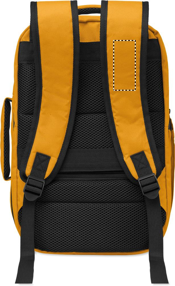 "600D RPET polüestrist valmistatud laiendatav käsipagasikott 180° avausega. Sellel on kahe avatud sektsiooniga põhiosa, võrgust vahesein, polsterdatud 15-tolline sülearvutitasku ja pagasirihm."