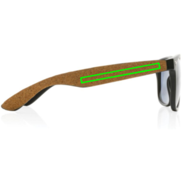 Päikeseprillid on valmistatud GRS-i sertifikaadiga taaskasutatud arvutiraamist. Raami taaskasutatud sisaldus on 100%. Taaskasutatud kogusisaldus: 68% eseme kogukaalust. GRS-sertifikaat tagab taaskasutatud materjalide täielikult sertifitseeritud tarneahela. FSC® korkdetailidega välimistel templitel. Läätsed on suitsuakrüülist ja vastavad standarditele EN ISO 12312-1, UV 400 ja CAT 3. Pakitud FSC® kraftpakendisse