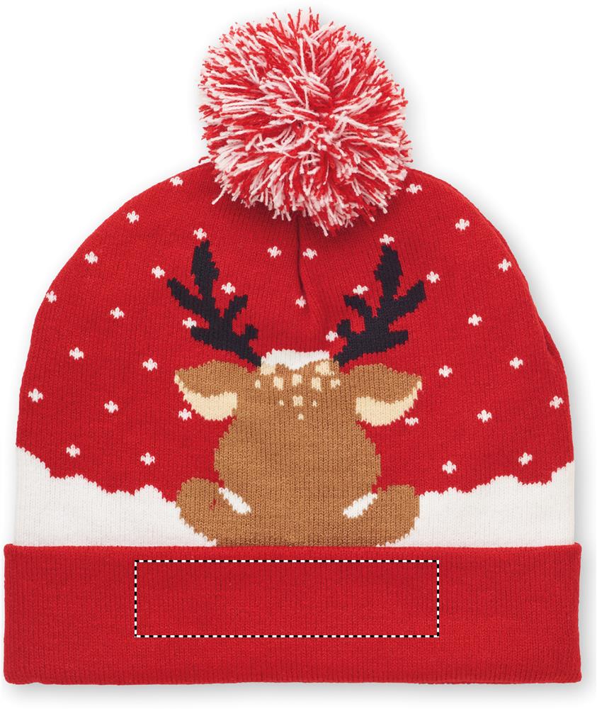 Pehmest venitavast akrüülist jõuludeks kootud müts manseti ja tupsuga.