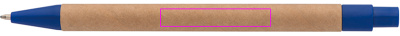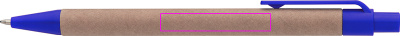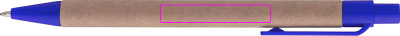 Taaskasutatud paberist ja värvilisest plastikust pastapliiats, sinine kiri. Teie logo on trükitud klipist paremale.