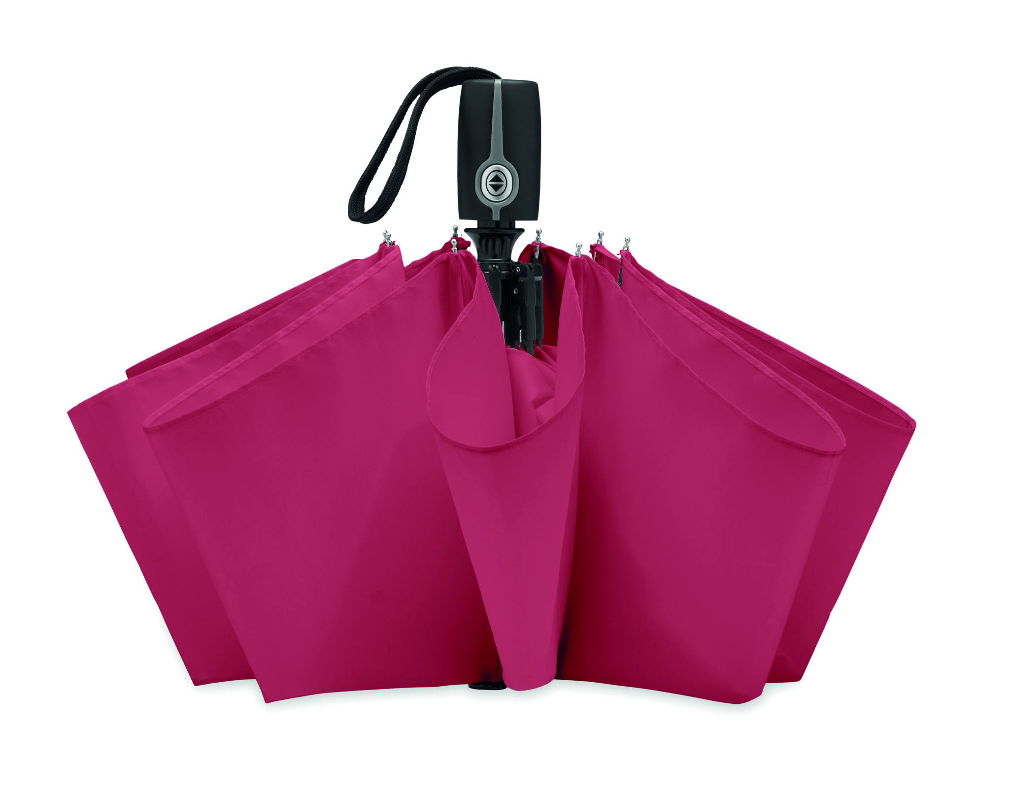 21-tolline Luxe 3-kordne automaatne tuulekindel vihmavari 190T pongee tsingitud terasest võlliga, mustad ribid kaheosaliste klaaskiust ja kroomitud metallist otstega, must kummeeritud käepide koos kupliga. Kaasas sobiv kott. Automaatne sulgemine.