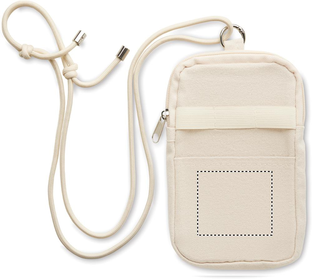 Must ümbertöödeldud puuvillast nutitelefoni kott RPET polüestrist reguleeritava kaelapaelaga, mille esiküljel on avatud tasku. 280 gr/m².