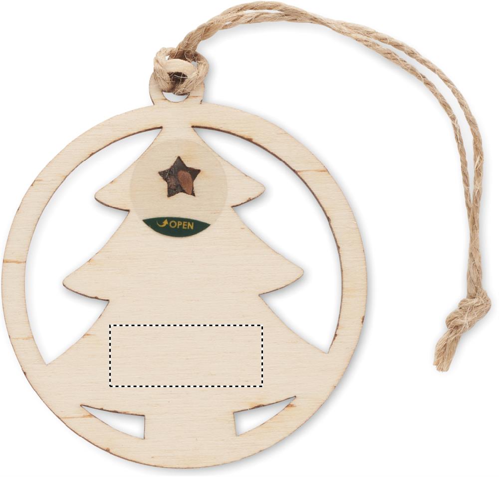 Puidust puukujuline dekoratiivriip džuudist nööriga, sealhulgas kuuseseemnetega. Esitatakse kraftümbrikus. Valmistatud EL-is.
