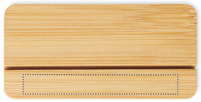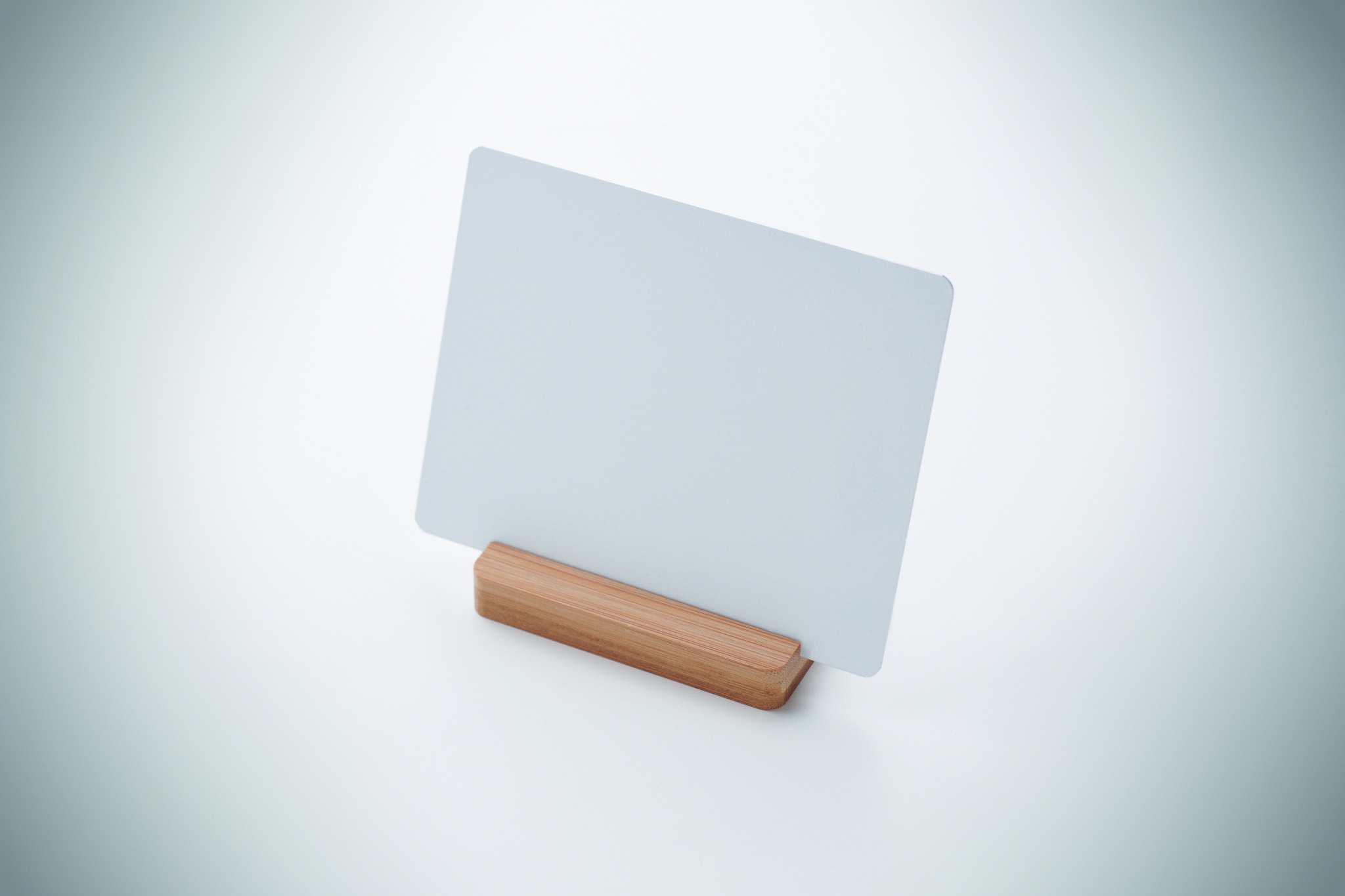 Alumiiniumist reklaamplaat naturaalse bambuspõhjaga. Ideaalne brändinguks või väljapanekuks.