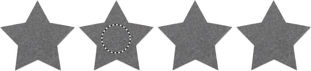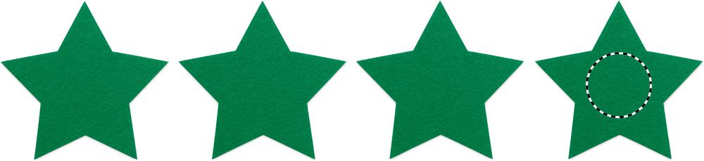 4 tähekujulise RPET-vildist rannaaluse komplekt, mis on pakitud kraftkarbis.