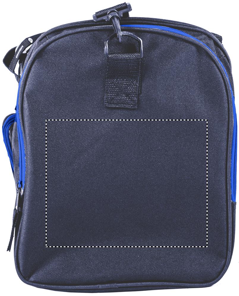 600D polüestrist spordikott, millel on 2 lukuga küljeosa ja 1 lukuga kõrvaklapiaasaga esitasku. Kaasas eemaldatav ja reguleeritav õlarihm.