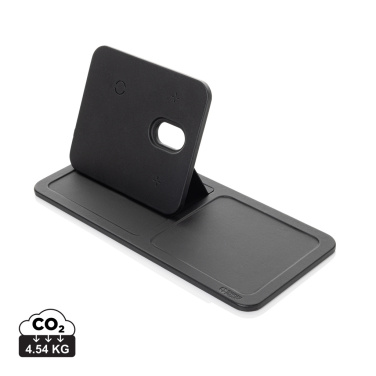 Luksuslik ja kokkupandav kolm-ühes juhtmevaba laadija koos lauaalusega, mis on valmistatud RCS-i ringlussevõetud PU-st. Taaskasutatud kogusisaldus: 5% eseme kogukaalust. RCS-sertifikaat tagab taaskasutatud materjalide täielikult sertifitseeritud tarneahela. Juhtmeta laadija on varustatud magnetilise 15 W juhtmevaba laadija ja täiendava 5 W juhtmevaba laadijaga, mis sobib kõrvaklappide või muude väikeste juhtmevabade laetavate seadmete jaoks, ning 2,5 W juhtmevaba laadijaga nutikellade jaoks (ainult Apple'i kellad). Kaasas 120 cm TPE kaabel. Pakitud FSC® segupakendisse. Toode ja tarvikud 100% PVC-vaba. Minimaalne sisend: 9V/3A optimaalseks kasutamiseks. Väljund: Telefon: 9V/1.1A; 9V/1,67 A/(15W), kõrvaklapid: 5V/1A (5W), käekell: 5V/0,5A.