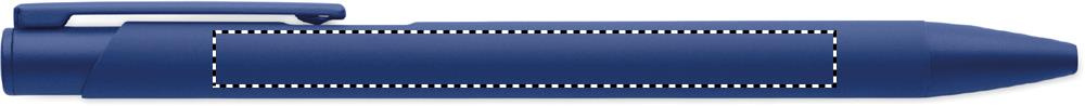 Taaskasutatud alumiiniumist valmistatud surutüüpi pastakas, millel on rauast klamber ja värviline kummeeritud korpus. Sinine tint.