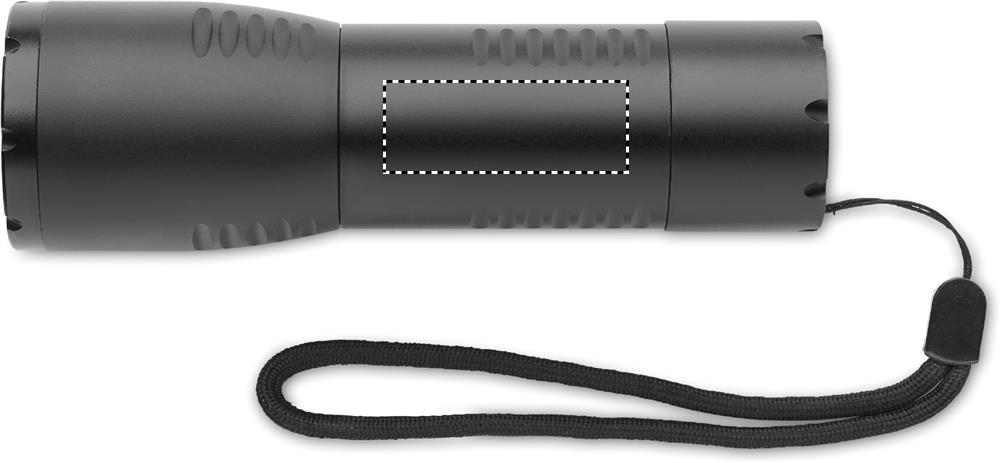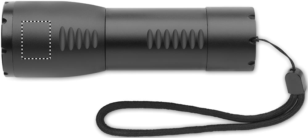 Väike alumiiniumist suumitav LED taskulamp ja eemaldatav rihm. Väljund: 200 luumenit. 3 AA patareid ei sisalda.