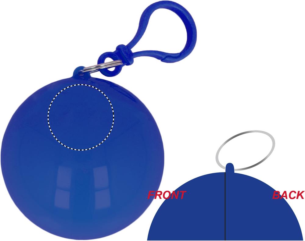 Läbipaistev PE pontšo, mis on pakitud karabiinhaagiga AS-i kuulkarpi, et riputada vööle või kotile.