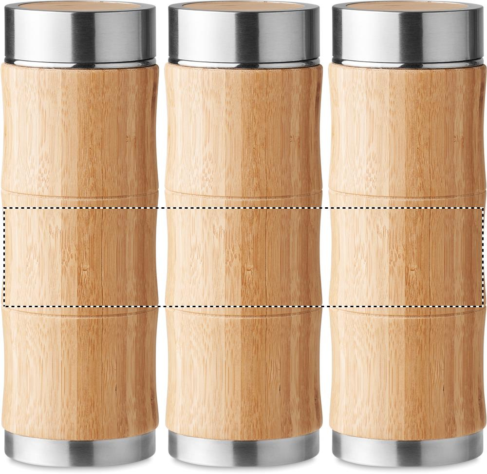 Kaksiseinäinen ruostumattomasta teräksestä valmistettu 350 ml termospullo, bambu kuorella. Sisältää teesiivilän, tuote on vuoto vapaa. Luonnollisen materiaalin (bambu) vuoksi, tuotteiden värissä/ koossa saattaa olla erinäisyyksiä ja tämä voi vaikuttaa painatuksen lopputulokseen.